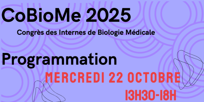 Lire plus »Bonjour à tous et toutes, le COBIOME approche ! Le Congrès des Internes de Biologie médicale est une journée qui t’es dédiée ! Quand ? Le mercredi 22 octobre 2025 ! Où ? Comment ? A l‘hôpital Cochin, en amphithéatre Dausset de 13h à 18h. Que s’y passe t il ? Des …